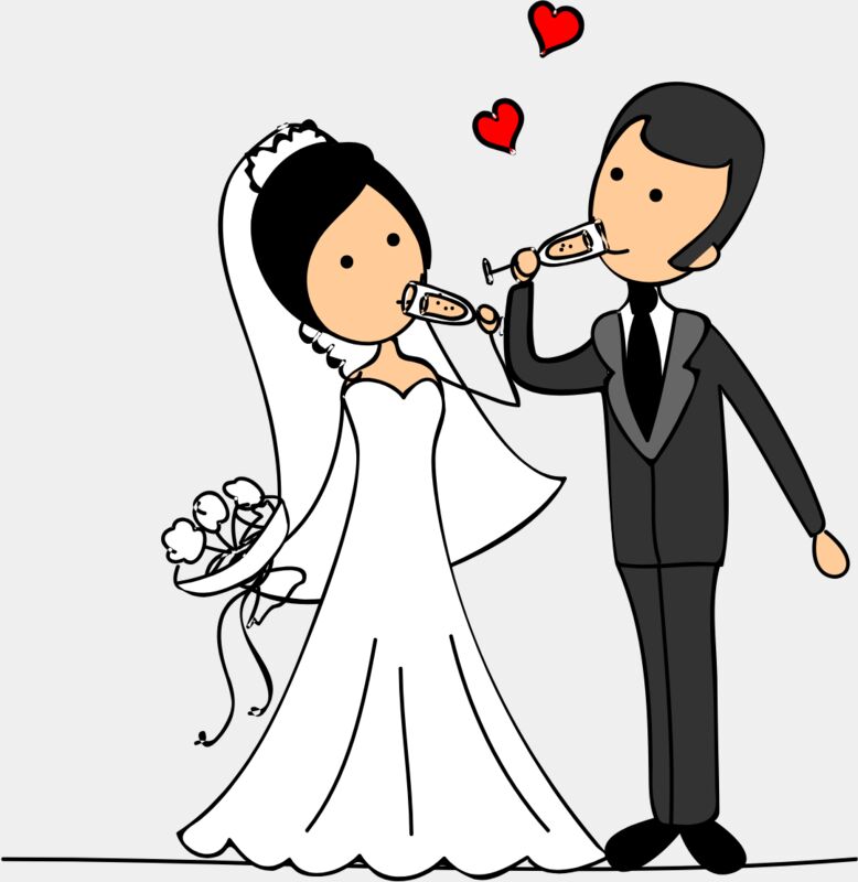 Cartoon Wedding Groom Bride Champagne Glasses 2
