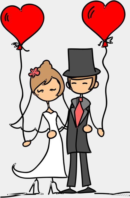 Cartoon Wedding Groom Bride Heart Balloons 4