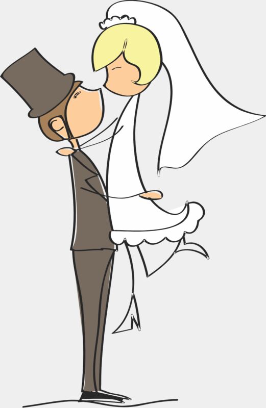 Cartoon Wedding Groom Bride Hug 1