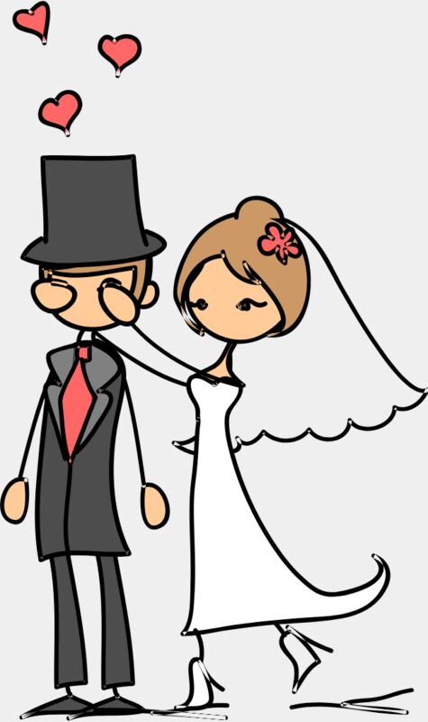 Cartoon Wedding Groom Bride Hug 9